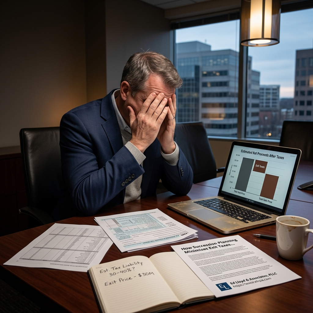 Professional services firm, $15M sale price. Unplanned exit: $4.2M tax bill. Net: $10.8M. Planned exit (3-year installment + earnout): $2.6M tax bill. Net: $12.4M. Difference: $1.6M additional proceeds.