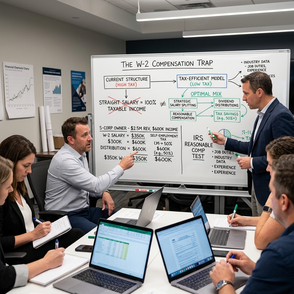 Action item: Calculate your current W-2 as a percentage of total owner compensation. If it’s more than 75% of your total comp, you’re likely leaving tax savings on the table.